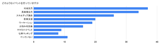 ・行っているイベントは「地域交流」「異業種交流」が多い