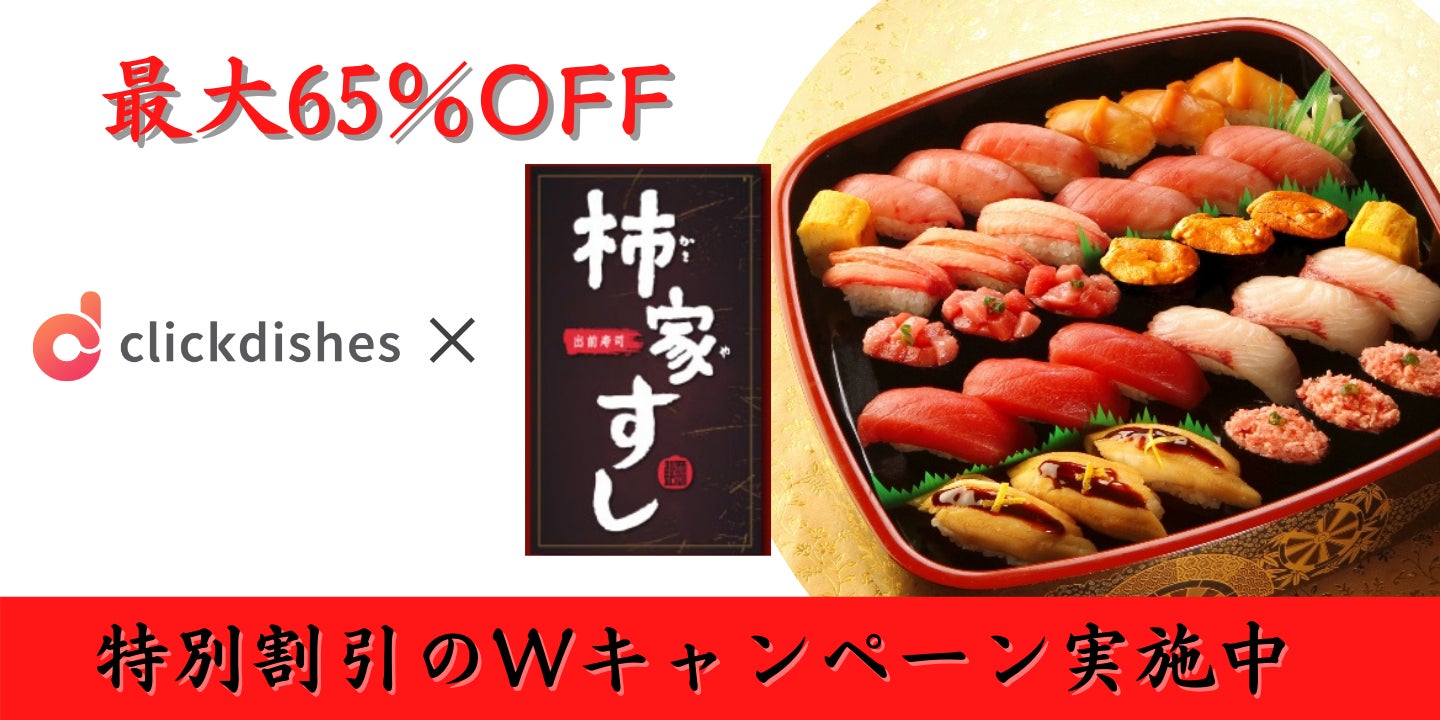 【最大65%割引】2022年5月2日(月)より、都内に複数店舗を展開する人気店「柿家すし」にて、ClickDishes限定のWキャペーンを実施します。