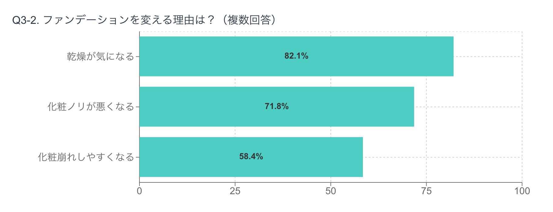 乾燥が気になるから: 82.1% 化粧ノリが悪くなるから: 71.8% 化粧崩れしやすくなるから: 58.4%