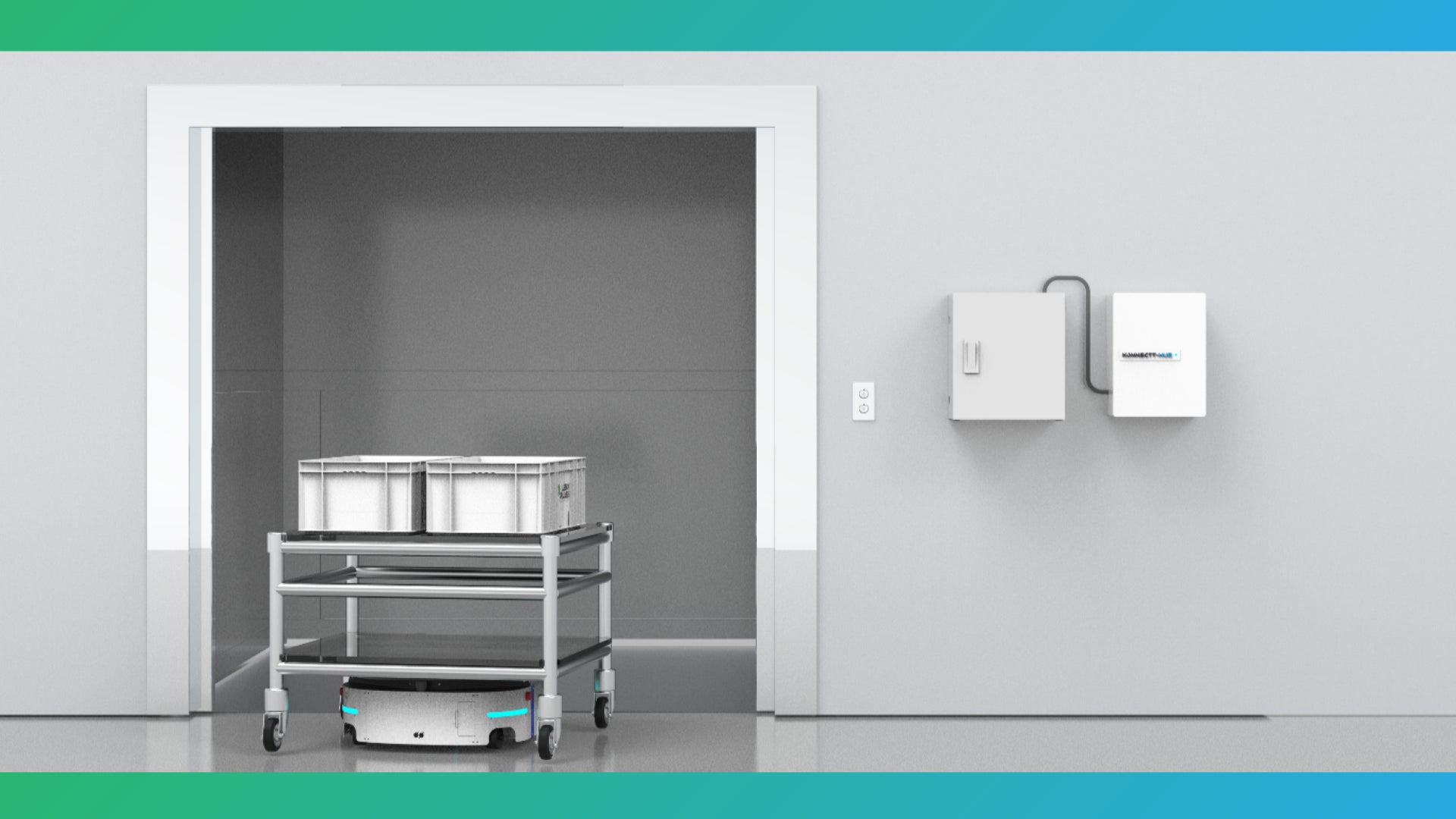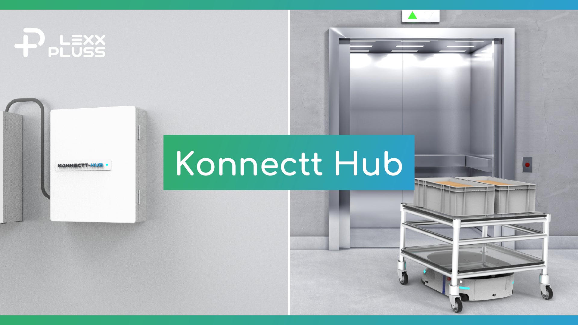 新製品「Konnectt Hub」は、エレベーターや既存設備の制御盤に直接接続するだけで、当社が開発・販売している自動搬送システムHybrid-AMR、複数台の群制御が可能なフリート管理システムKonnecttとシームレスにつながり、複数の設備と自動連携ができるIoTソリューションです。