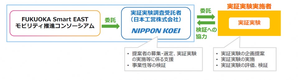 実証実験者は、本コンソーシアム及び本コンソーシアムが委託する実証実験調査受託者(日本工営株式会社)と連携して本実証実験を実施します。