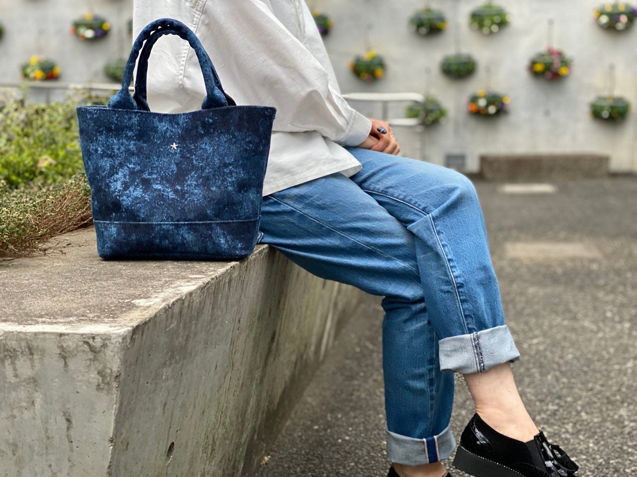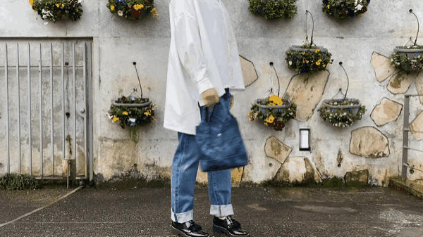 -デニムの聖地-としても名高い井原産デニムを用い、美しい染色で表現しました。市内に流れる小田川の上流水のみを使用し染色を行うため、美しい色表現がが可能となります。また染色後の水は、農作物の栽培に再利用後、環境基準に配慮し河川に戻すシステムを構築しているため、正真正銘のサスティナブルなデニム製品と言えます。