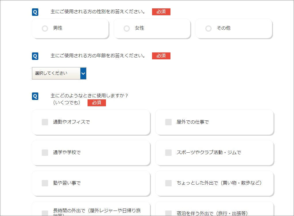 また設問内容に合わせた選択肢のタイプを設定できるので、スムーズな回答につながり離脱率を軽減します。