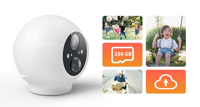 SwitchBot屋外カメラは、最大256GのマイクロSDカードに対応し長時間録画が可能となりました。また、映像の保存先をローカルストレージまたはクラウドストレージから自由に選択できます。クラウド上に映像が保存されれば、万が一カメラ本体が破損しても映像を保全することが可能です。