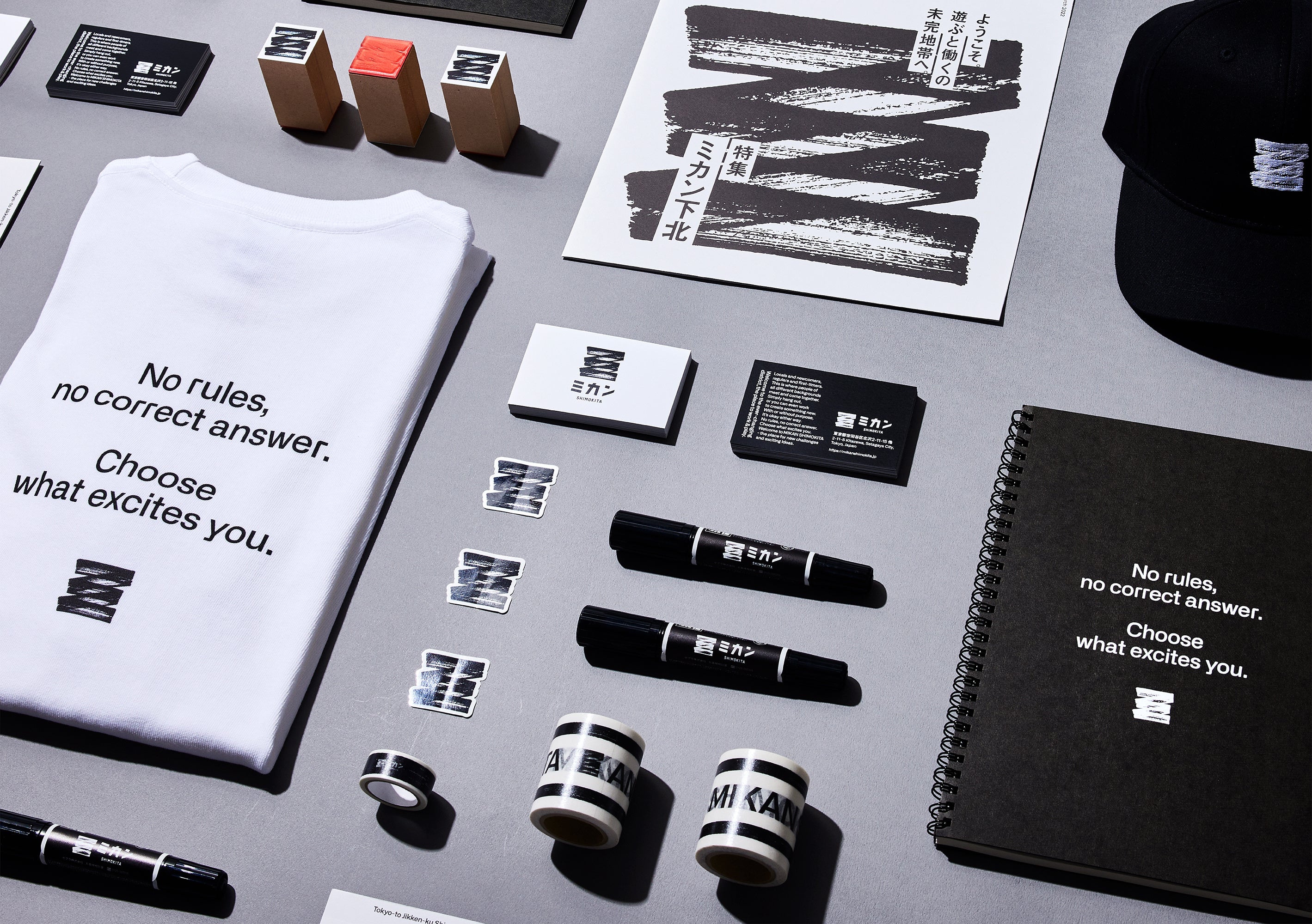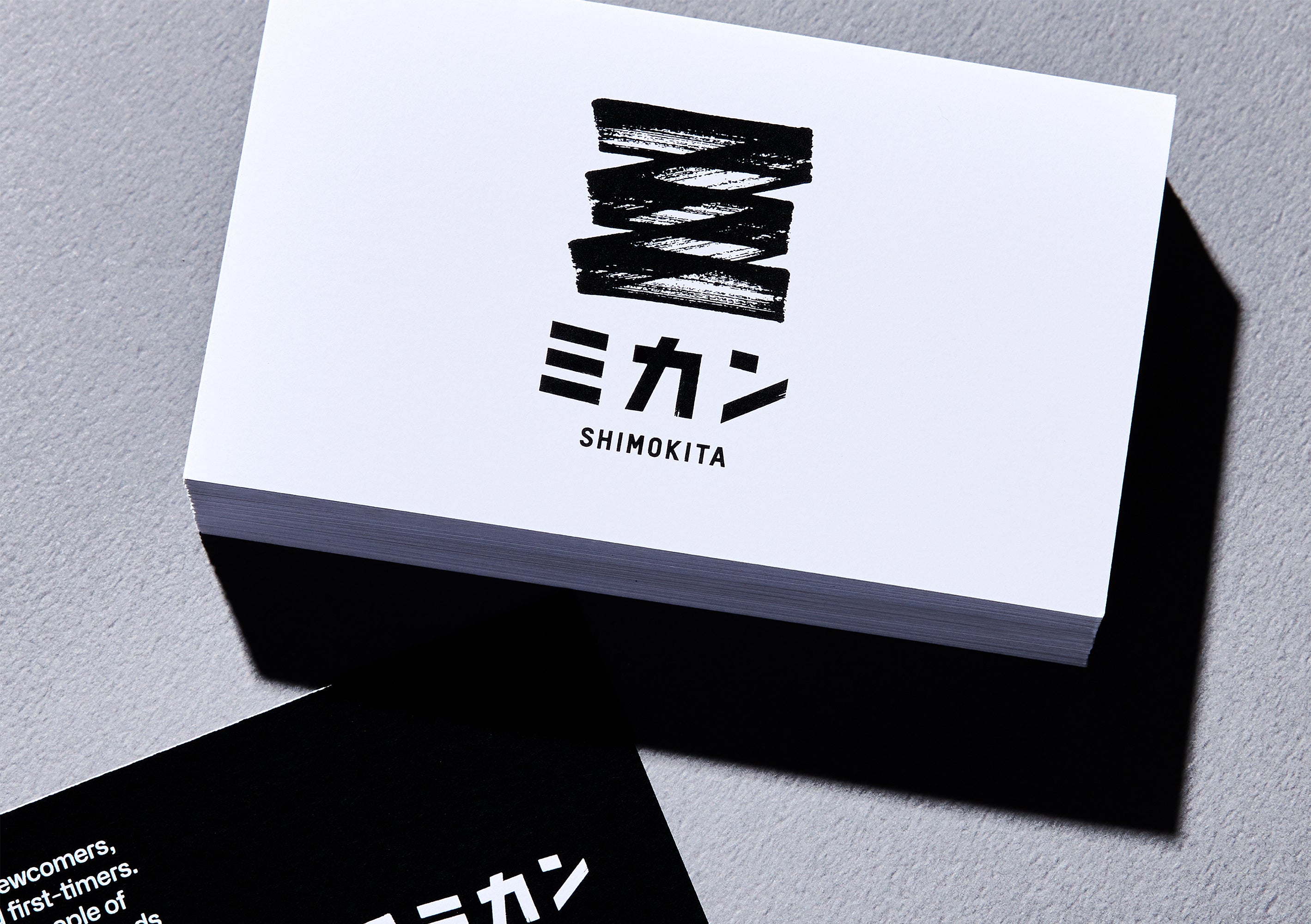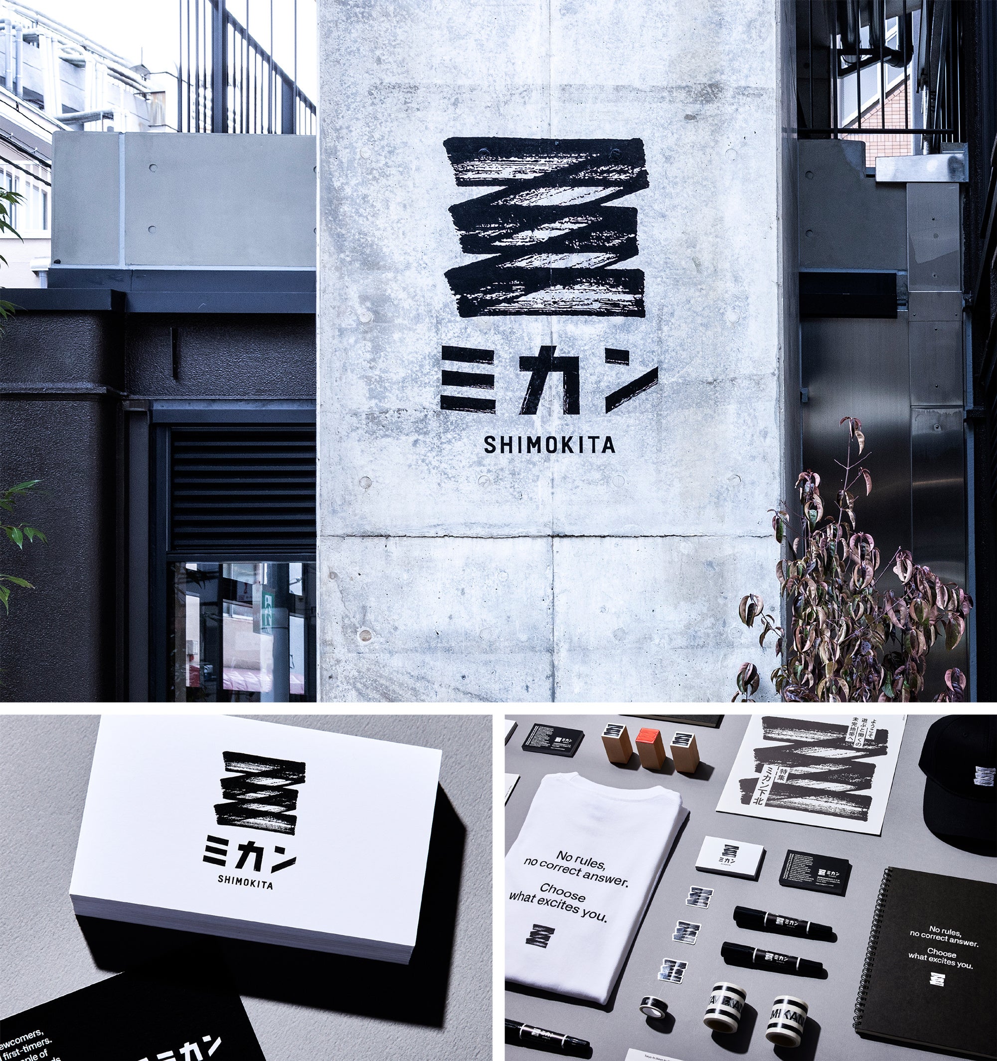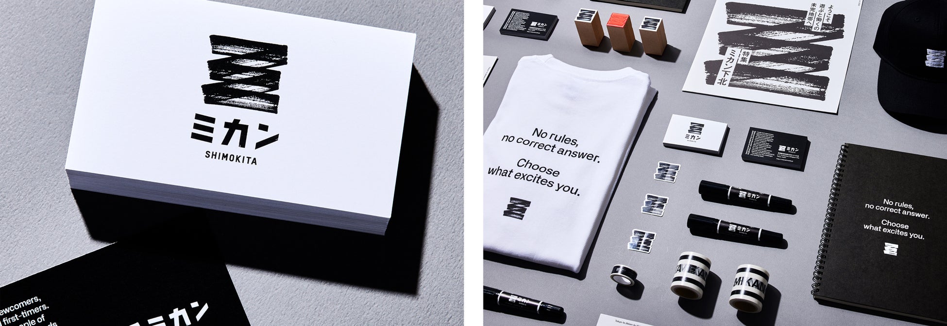 下北沢は、多様な文化や人々が交差しながら絶えず編集され変わり続けている、いわば“未完“の街だと言えます。「ミカン下北」はそこに下北沢の普遍的な魅力を見出したことによるネーミングであり、ジャンルや価値観を超えてさらに人々が混ざり合う場所となって、実験的な挑戦や新たな出来事を生み出し続けていきたいという思いが込められています。それを象徴するロゴは、人々がトライ&エラーを繰り返しながら新しいものを生み出そうとするアグレッシブな姿勢を、頭文字の「ミ」からインスピレーションを得た“塗りつぶし“をモチーフとしてシンボリックに表現しています。さらに、人々がこのブランドに関わりやすくなるように、誰もが真似して描けるデザインにしました。なお、実験する人や内容の個性を引き立たせられるようにということから、モノトーンをブランドカラーにしています。