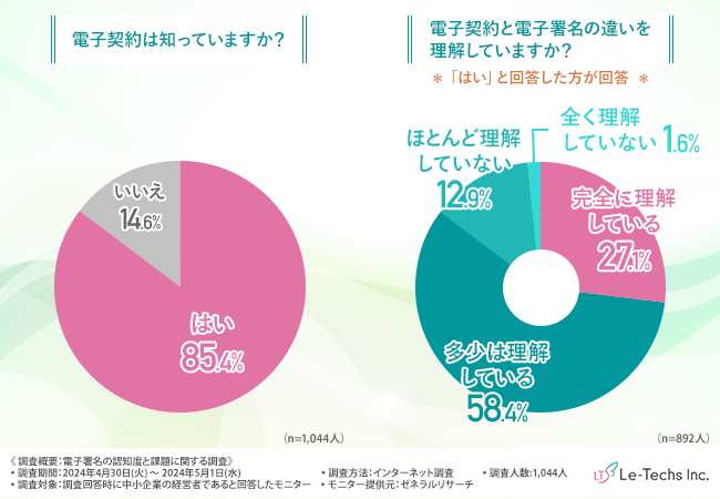 電子契約と電子署名の違いについて理解している方の割合などが明らかになりました。