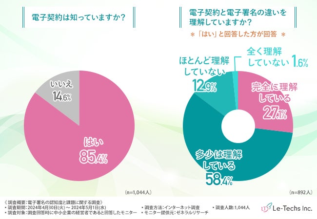電子契約の認知度は85.4%と高いが、電子契約と電子署名の違いを完全に理解しているのは27.1%