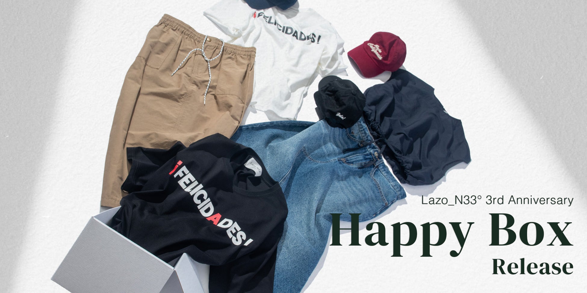 Lazo_N33°がブランド設立3周年を記念したスペシャルイベントを開催!ロングセラーアイテムの限定カラーや、スタイリングが楽しめるHappy Box、さらに“Tシャツ総選挙”も実施します!