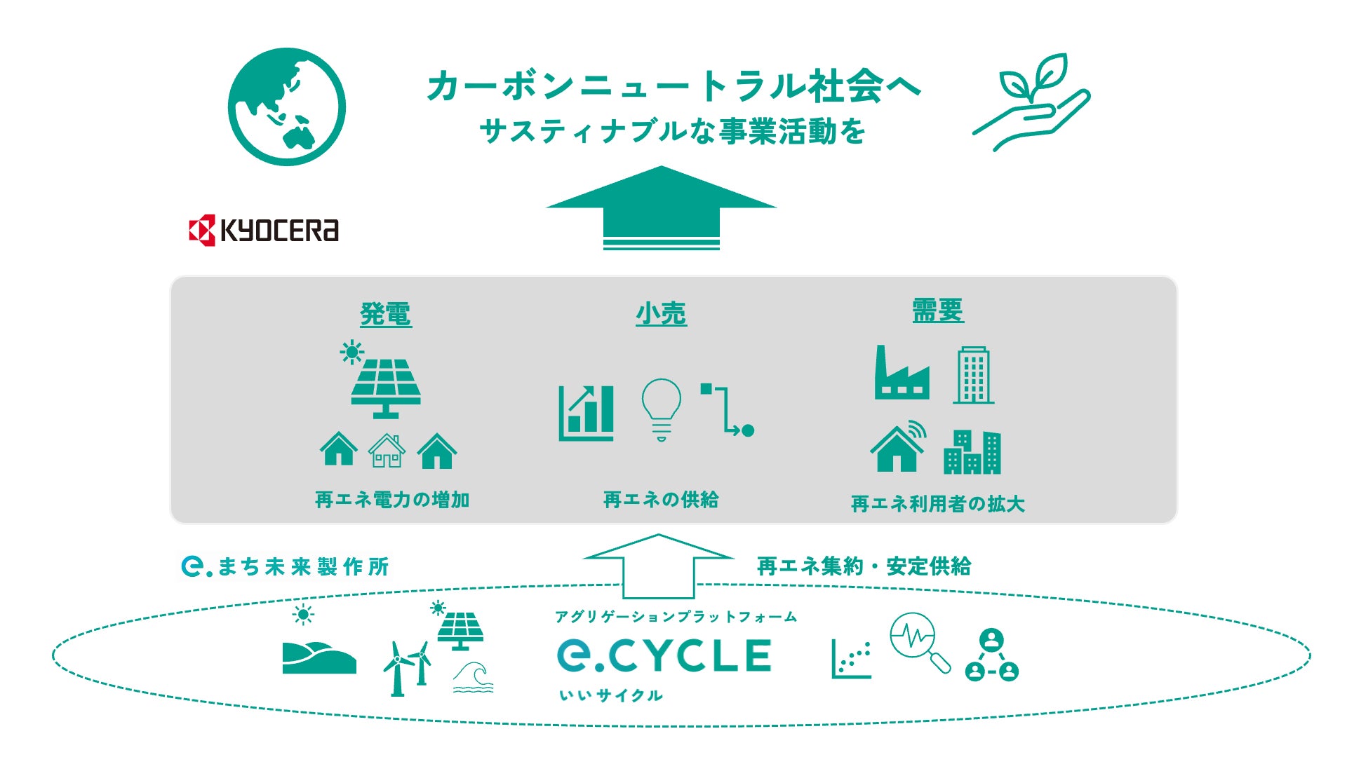 再エネ特化型アグリゲーターの株式会社まち未来製作所(代表取締役 : 青山英明 本社 : 神奈川県横浜市中区海岸通4-17)は、太陽光発電のパイオニアである京セラ株式会社と、カーボンニュートラル社会の実現に向け、再エネアグリゲーション基盤を活用した協業を開始いたしましたことをお知らせいたします。