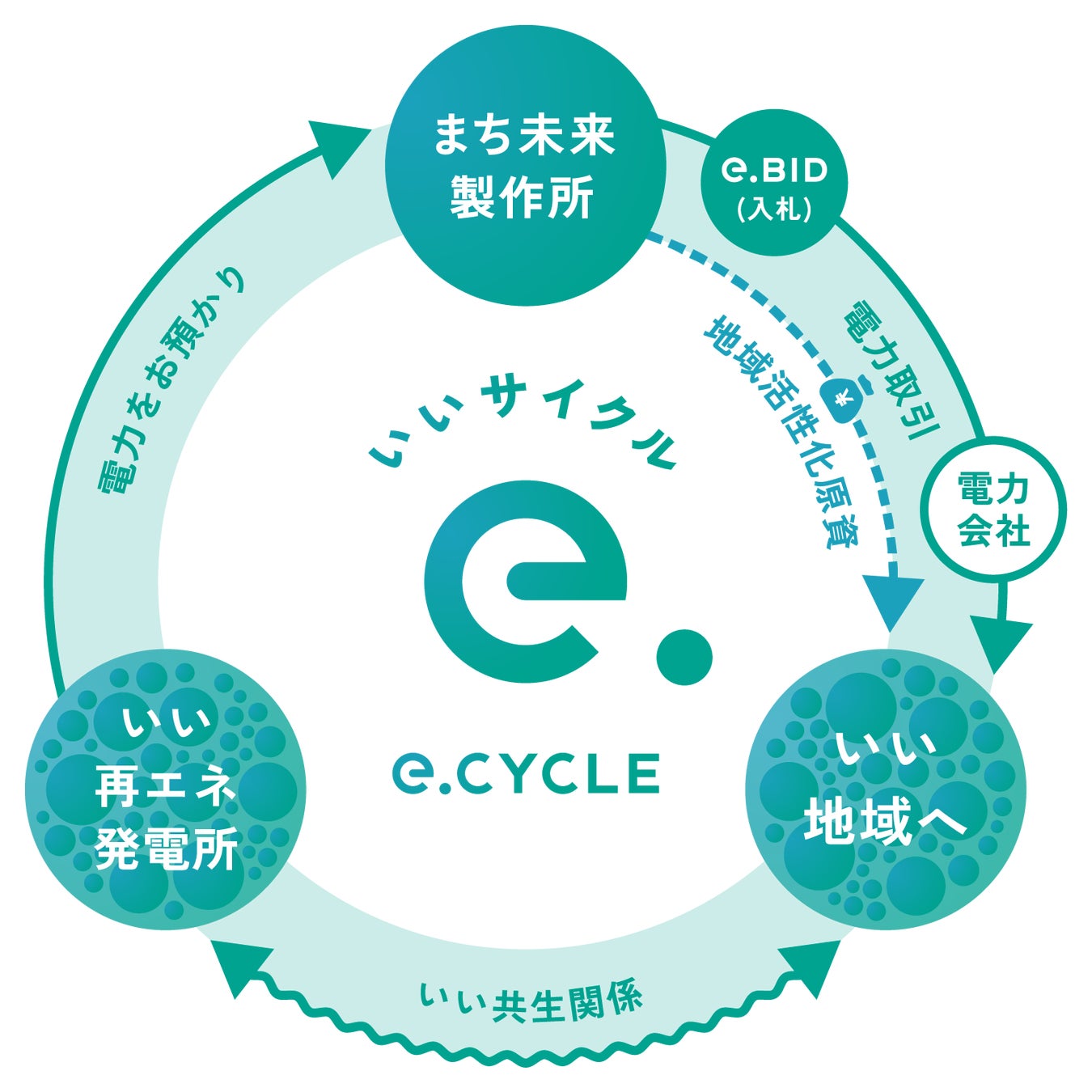 株式会社まち未来製作所は、再エネの地域共生エコシステムe.CYCLE(いいサイクル)を運営しています。