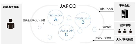 ジャフコが持つ知見やネットワークを会社設立の前段階で提供することで、より多くの挑戦を後押ししたいと思いから、客員起業家制度の取り組みを開始することに致しました。