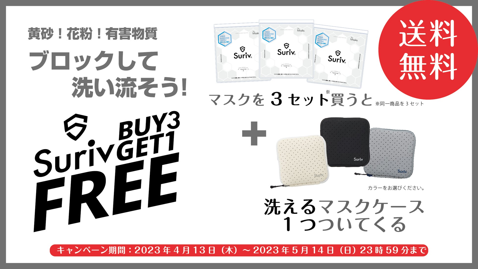 Suriv 5 マスクを3セットご購入いただいた方に、「Suriv まるごと洗えるマスクケース」を1つプレゼント。