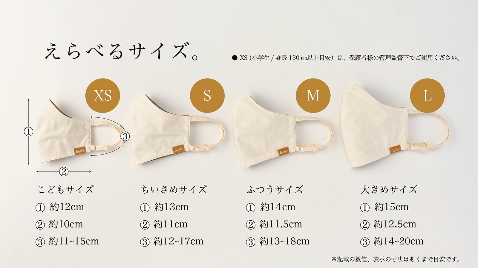 マスクは鼻やあご部分のすき間を無くすことで効果を発揮。お顔に合うサイズをお探しの上、安全にお使いください。