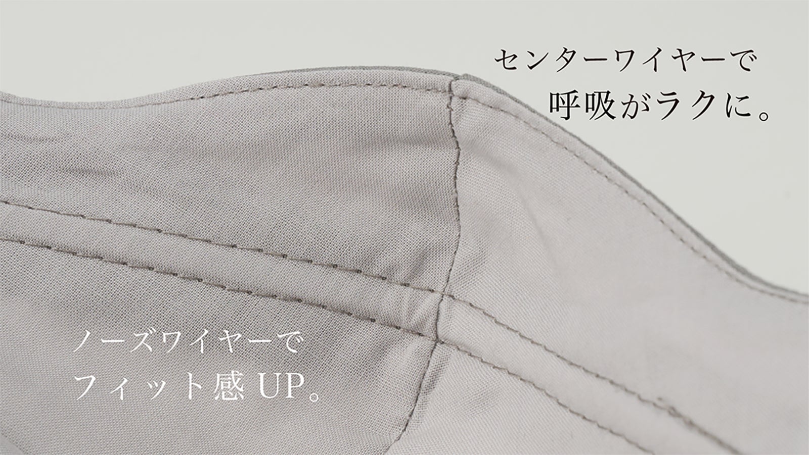 呼吸がしやすく、長時間の使用でもストレスを感じにくい立体設計!洗える金属不使用のワイヤーで口元とマスクとの間に空間を保持。ノーズワイヤーはマスクのズレを抑え、メガネの曇り対策、花粉やホコリなどの侵入防止にも効果を発揮します。●着用前にワイヤーを曲げてクセづけすると、よりフィットし効果が高まります。