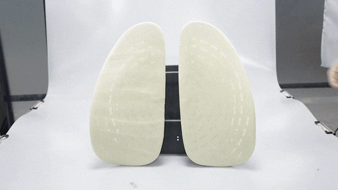 minicuteは人間工学理論に基づいて設計された背もたれです。2つのパットは腰に密着させて、腰から背中全体を広く支えてくれます。着座時にも直立姿勢のような背筋の伸びた状態を維持します。
