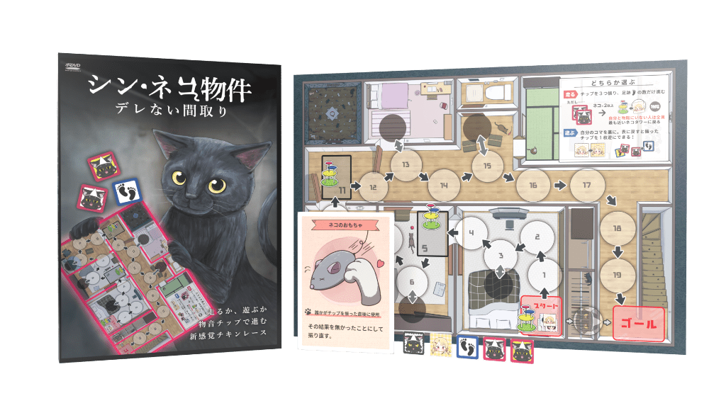 幽霊ネコが外出を阻む!新作ボードゲーム『シン・ネコ物件』12月9日販売開始!ゲームマーケット2023秋ではイベント特別価格で販売!