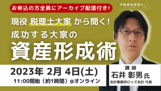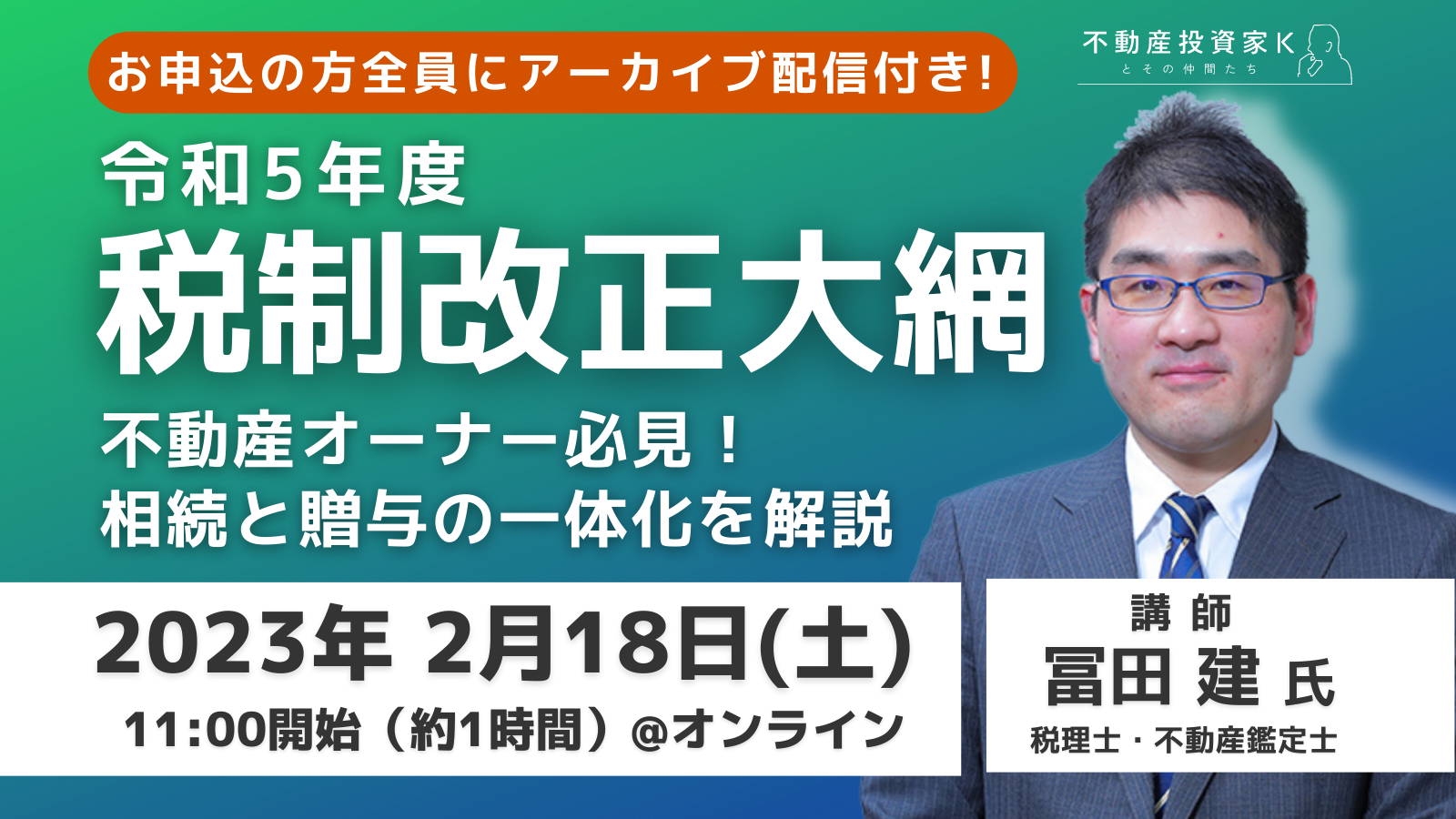 【2月4日・18日開催】成功する大家さんの節税とお金の残し方/令和5年度税制改正大綱ポイント解説【無料セミナー】