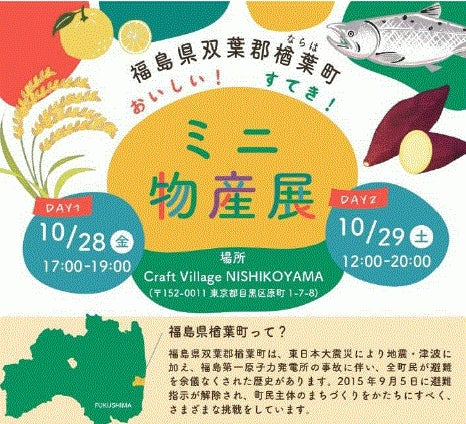 このたび、令和4年10月28日(金)~10月29日(土)に『福島県双葉郡楢葉(ならは)町 ミニ物産展』を「Craft Village NISHIKOYAMA」で開催する運びとなりましたのでお知らせ致します。