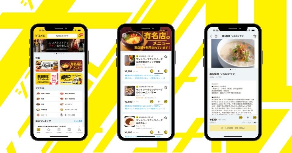 飲食店やフード提供事業者から預かったレシピを元に味や見た目を忠実に再現した仕込み済み商品を、シコメルと提携している食品工場にて製造します。出来上がった仕込み商品はアプリから発注を行うことができます。「シコメルストア」では、全17ジャンルから有名店やミシュランシェフ監修の仕込み済み商品などを発注でき、自店舗のメニュー拡充に活用することができます。また、4月10日には月額制プレミアムプランをリリースしました。プレミアム会員は2万円以上の購入で送料が無料になるほか、有名シェフ監修の豪華仕込み済み商品を購入することができます。
