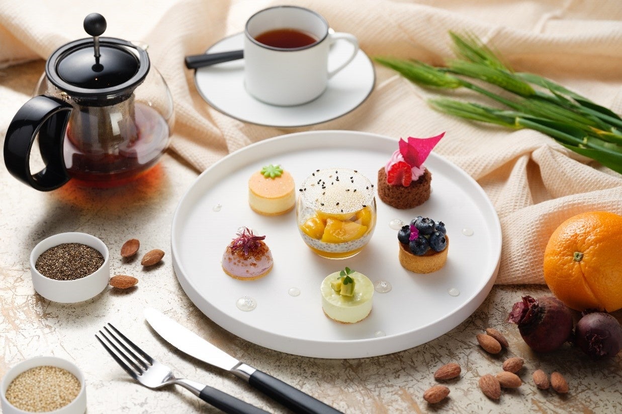 「ハイアット セントリック 金沢」(総支配人:高橋 慶、所在地:石川県金沢市)のオールデイダイニング「FIVE - Grill & Lounge」では、健康的な生活を見つめ直す日「Global Wellness Day」にちなみ、栄養価が高く美容や健康に良いとされているスーパーフードをふんだんに使用したケーキセットを4月29日(金)から6月30日(木)の期間で提供いたします。また、当日はコース料理をご注文いただいた方にオリジナルグリーンスムージーをサービスいたします。柑橘やシナモン、ジュニパーベリーなどのスパイスを使用した、爽やかな香りとスパイスの効いたオリジナルクラフトトニックも、1日限定でモクテルとしてご提供いたします。