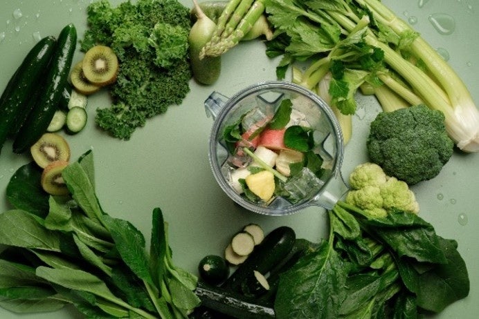 小松菜やりんご、バナナ、パイナップル、生姜をふんだんに使用したハイアット セントリック 金沢オリジナルグリーンスムージーを、ランチ・ディナーコースをご注文いただいた方にサービスいたします。野菜を最初に食べる食事方法、「ベジファースト」(ベジタブル・ファースト)でお召し上がりいただきます。