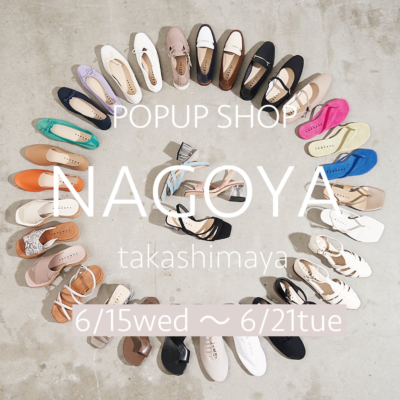 久しぶりの開催、そして名古屋での夏期間のPOPUPは初!ということで、サンダルを中心にパンプス、ミュール...と、夏にぴったりなラインナップをバリエーション豊富にご用意しております。