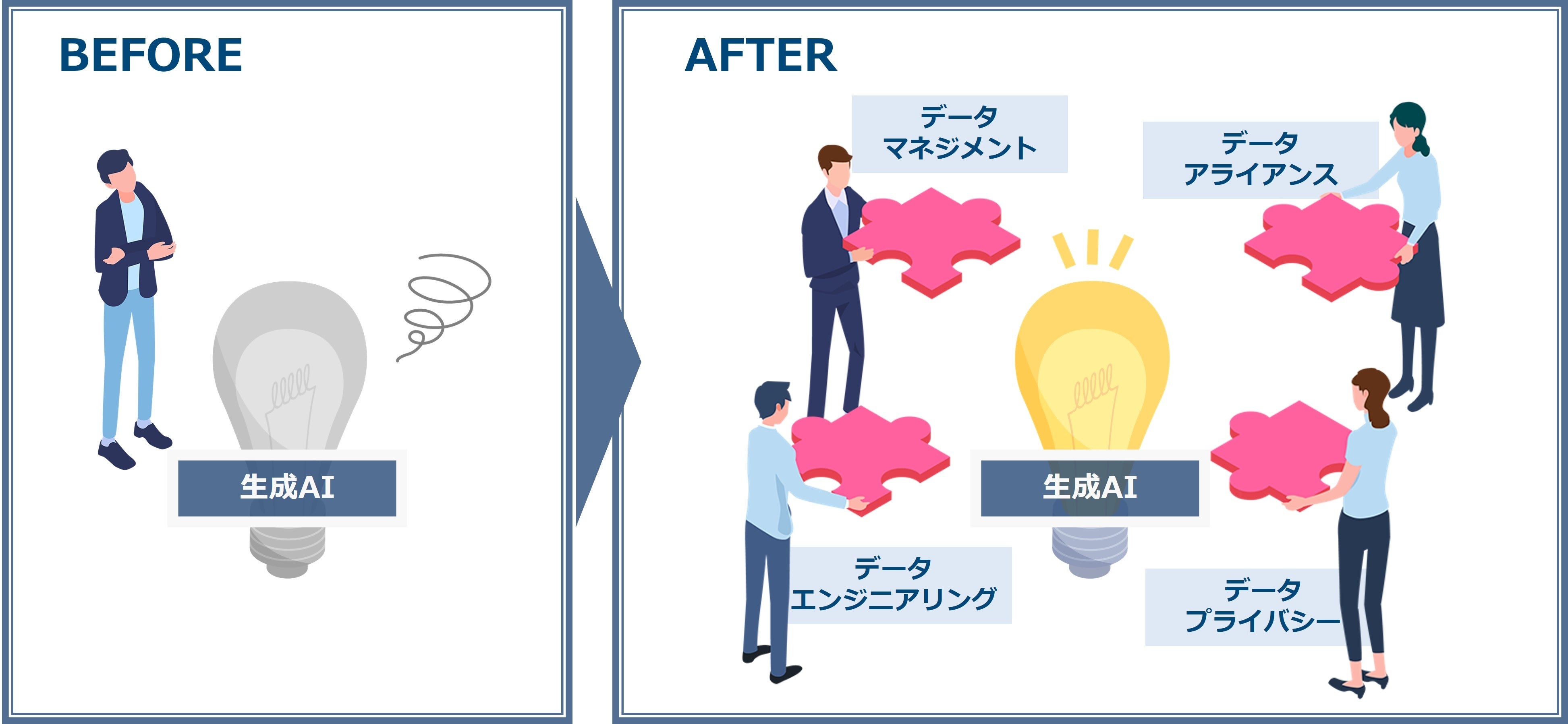 しかしながら、生成AIを通じて事業成長をもたらすまでには様々な課題があり、特にビジネス上の差別化を生み出すためには各社固有の資産であるデータをどのように活かすかという視点が不可欠です。