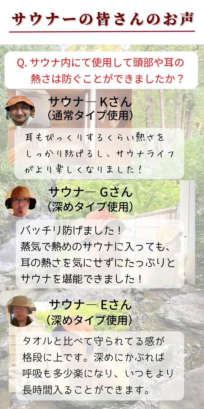 製作の段階からサ活をされている多くのサウナー方のの意見を頂き、モニターテストを実施しながら「これまでなかったサウナハット」を作ることを目標に掲げてまいりましたので、完成したサウナハットをテストして頂いた方々からは「深くととのえた。」「サウナがさらに楽しくなった。」など、沢山の喜びのお声を頂く事が出来ました。