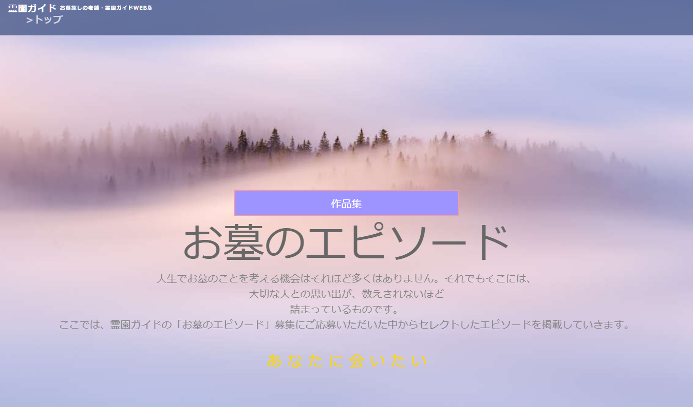 そこで、霊園ガイドでは、そんな心に秘めたエピソードを綴って頂ける場を作って行きたいと考えました。