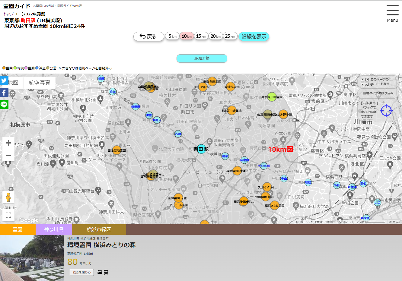 それぞれの霊園はすべて地図をドラッグしながらぐりぐり探せるようになっていて、それ以外にも郵便番号検索やキーワード検索など様々な機能も用意されています。ぜひご活用ください。