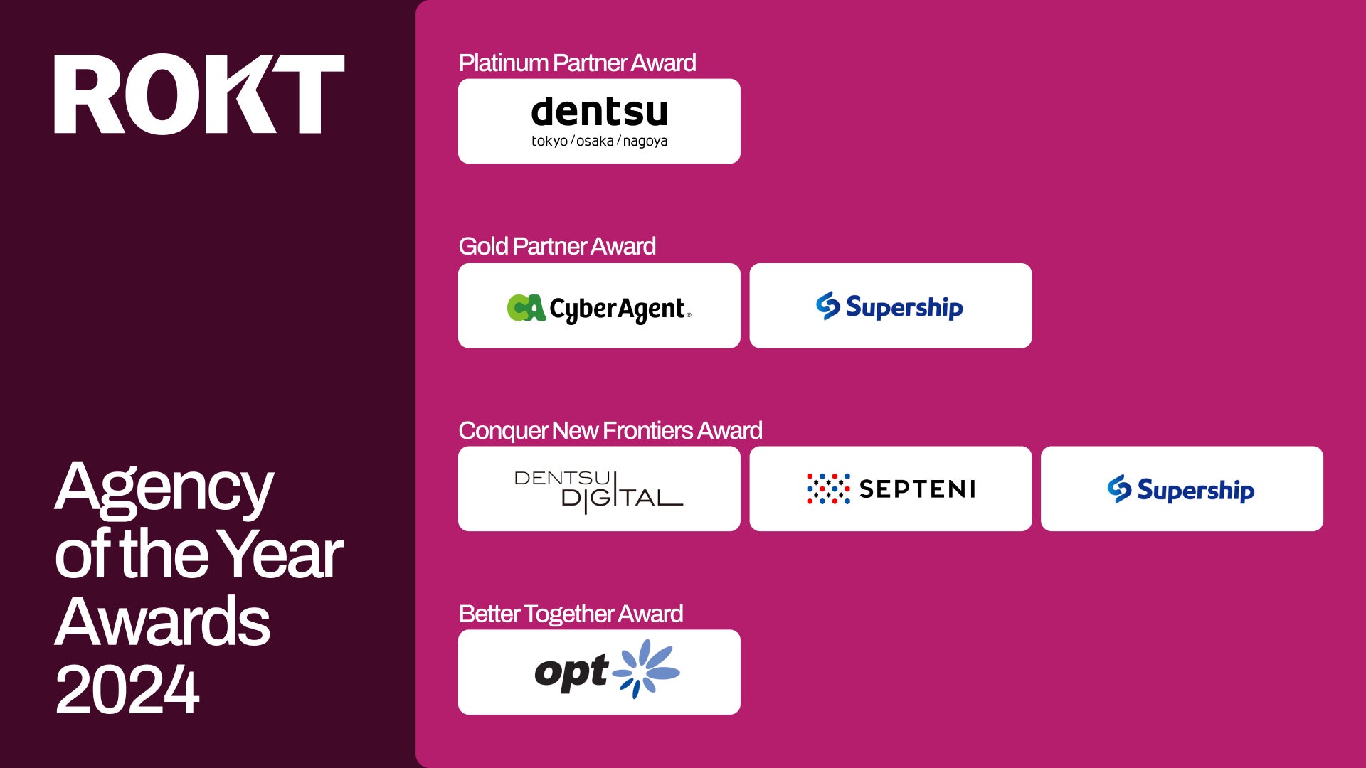 Roktが国内代理店パートナーを表彰する「Rokt Agency of the Year Awards 2024」の受賞企業を発表。