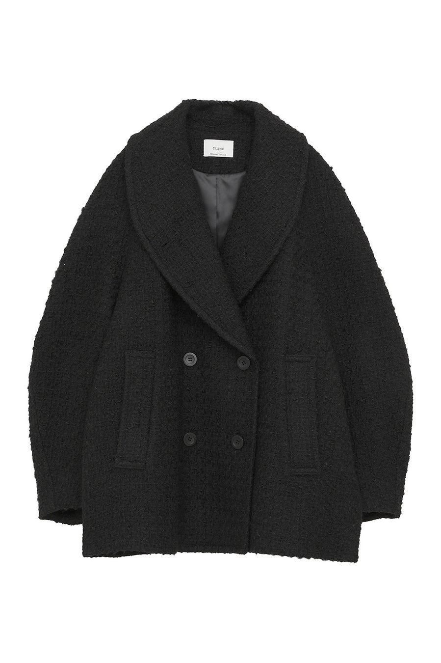 MINAMI TANAKA×CLANEコラボレーションのオーバーサイズのツイードコートです。みな実さんの「大きめのニットの上からバサっと羽織れるオーバーコートが欲しい」という思いから生まれたコート。大きめのショールカラーデザインで顔周りも華やかに見え、衿のボタンを止める事で寒い時期はマフラーいらず。CLANEらしいオーバーシルエットに、丸みを持たせた袖のラインがポイントです。