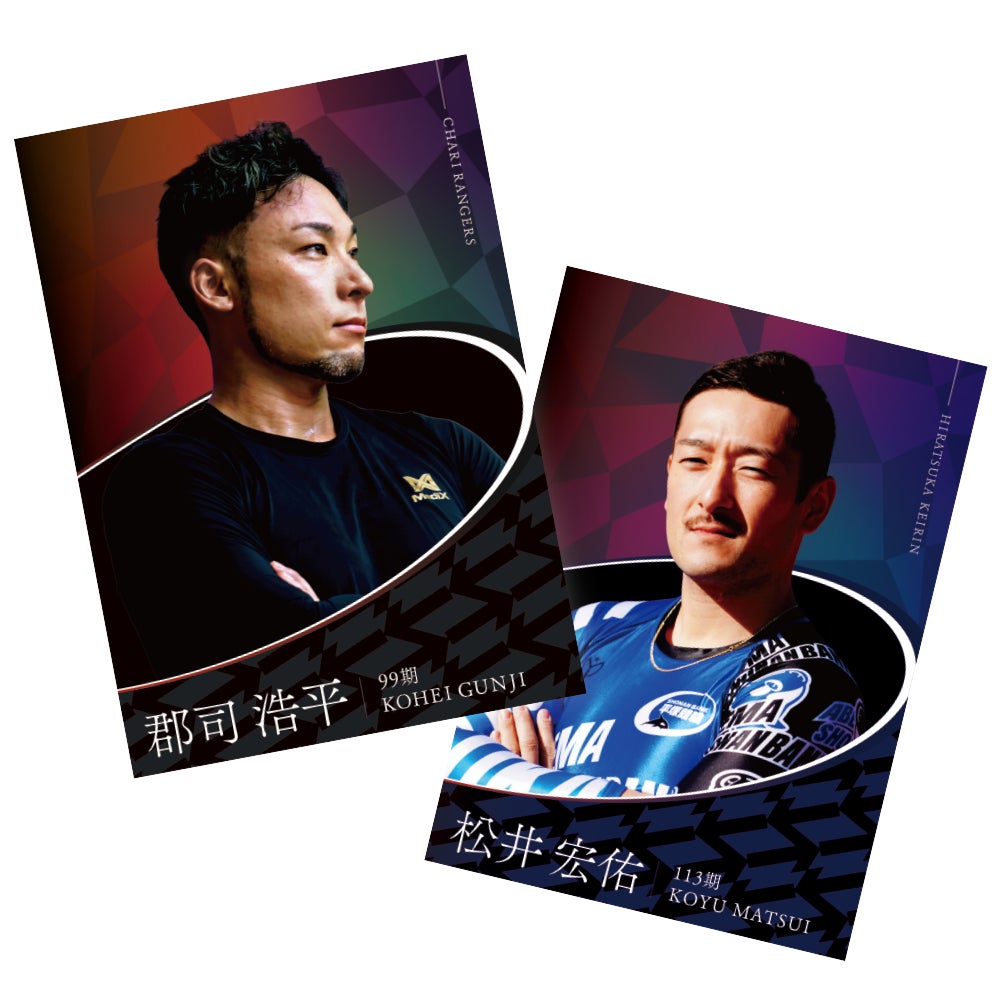 さらに、HUB店舗にて商品をご購入いただいた方には、チャリ・ロト限定トレーディングカードを1商品につき1枚プレゼントします。トレーディングカード(全11種類)は本企画に登場する選手がデザインされており、ご購入者さまへランダムでお渡しします。なお、平塚競輪所属選手のカードは本開催限定での配布となります。