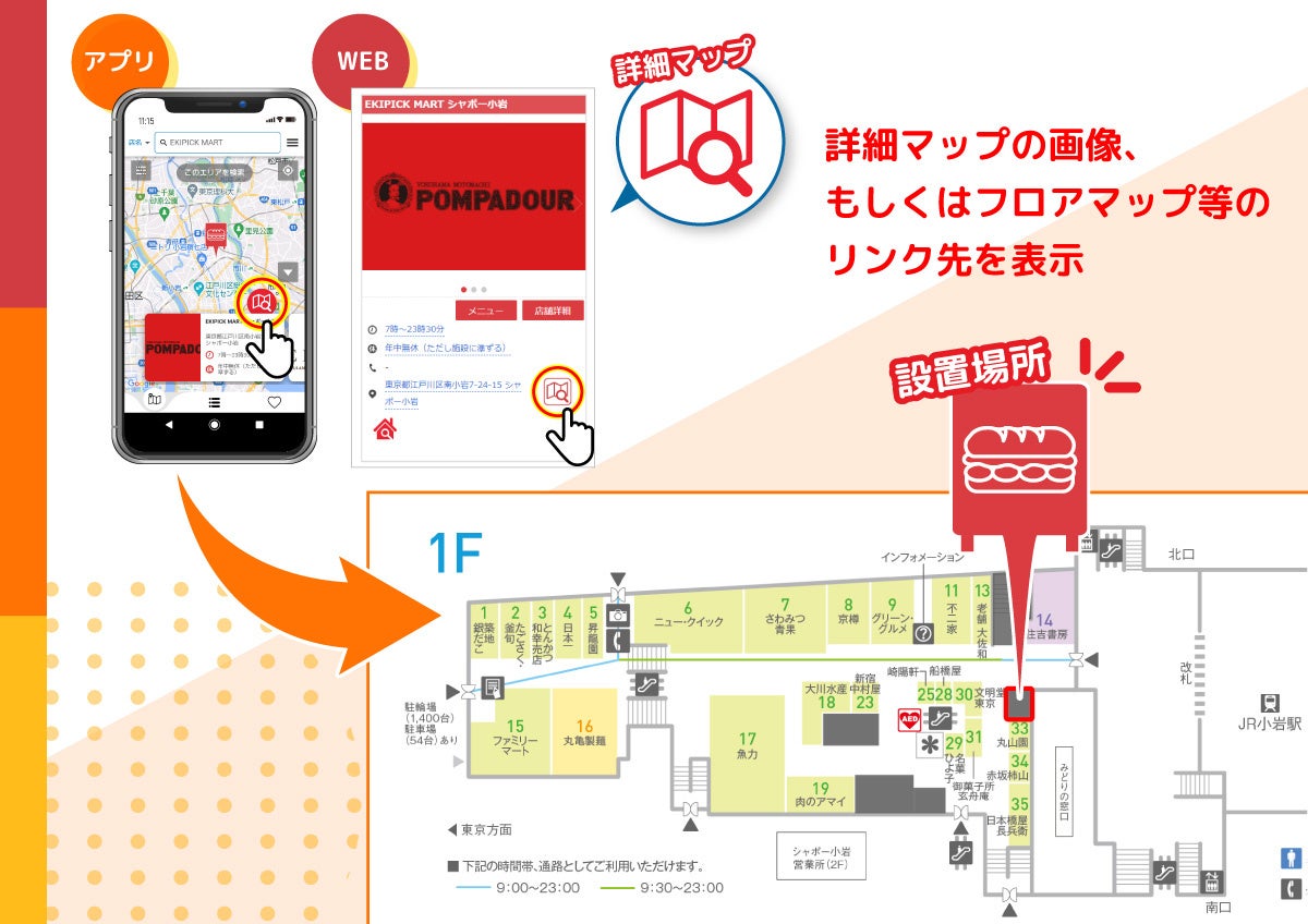 これまでの仕様に改良を加えたアプリで、設置場所や取扱商品の詳細をより分かりやすくお客様へお届けいたします。