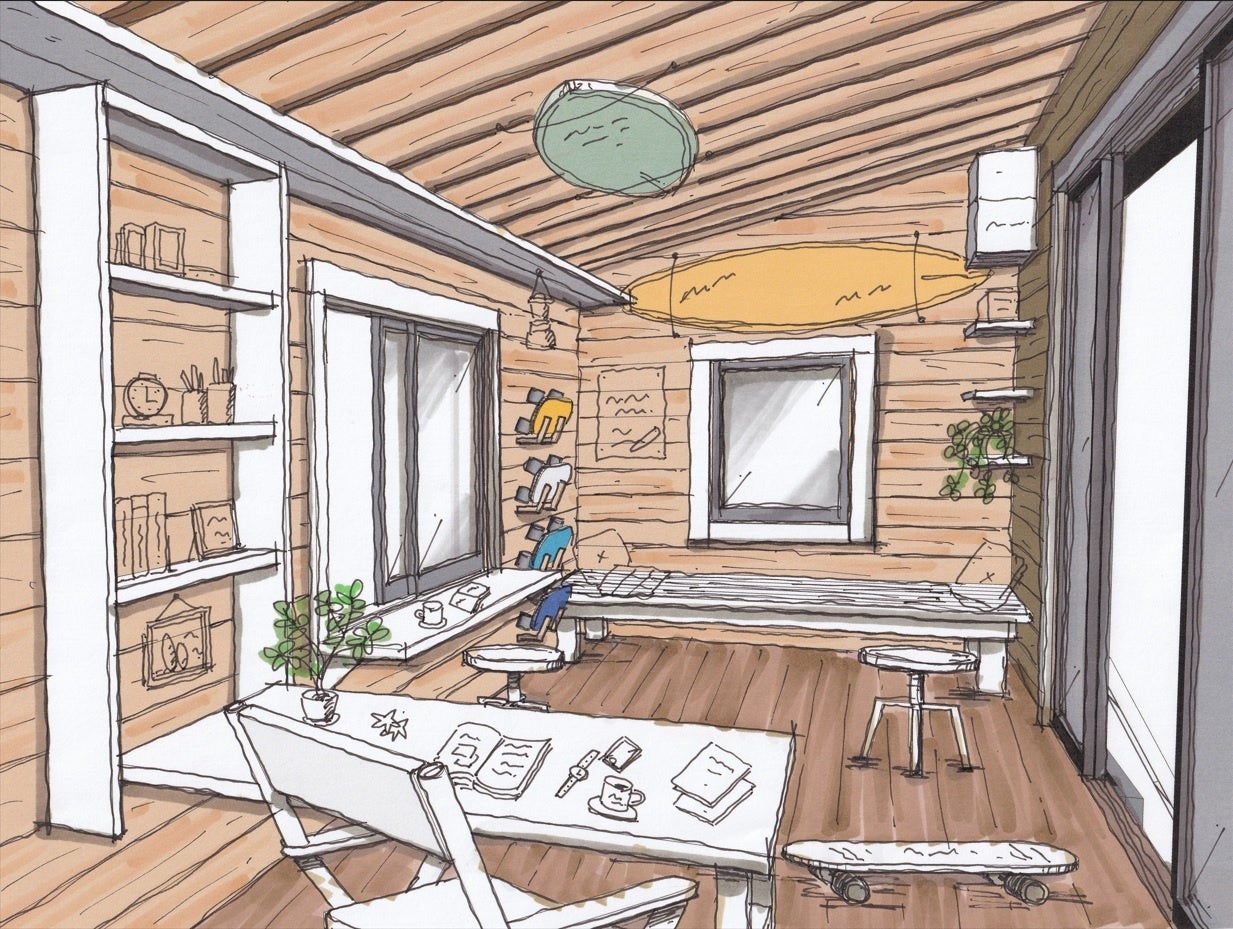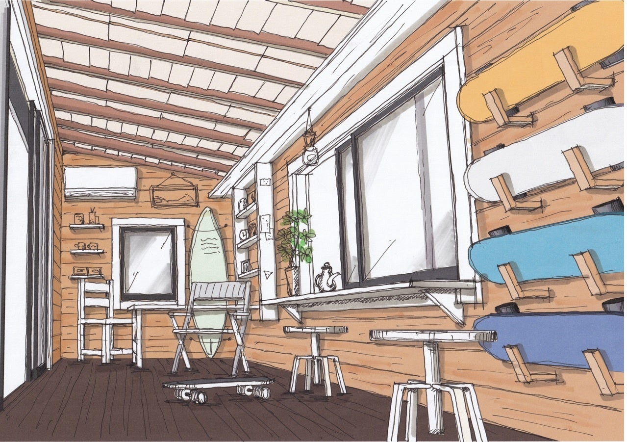 株式会社ムラサキスポーツは、アクションスポーツ用品の販売や大会運営等を手がけるなかで、ライフスタイルを重視し、様々な事業を通じてスポーツ文化を発信されています。一方、アールシーコアがBESS事業で目指しているのは、暮らしを楽しむ文化の創造です。サーフィンやスノーボードといったアウトドアスポーツは、BESSが提唱する“自然とつながる暮らし”にマッチし、また実際にBESSの家に住むサーファーやスノーボーダーの方も多いなど、顧客層もマッチしています。現在、BESSが自然のそばで大らかな暮らしを楽しむ「梺ぐらし」を行うためのコミュニティ用地を計画中の千葉県長生郡一宮町にはムラサキスポーツのカフェ併設店舗「SURF GARDEN SHOP&CAFE」があります。そこで、海や山に持ち出せる“IMAGO”を使って、両社で新しいライフスタイルの提案ができると、今回のタイアップの運びとなりました。