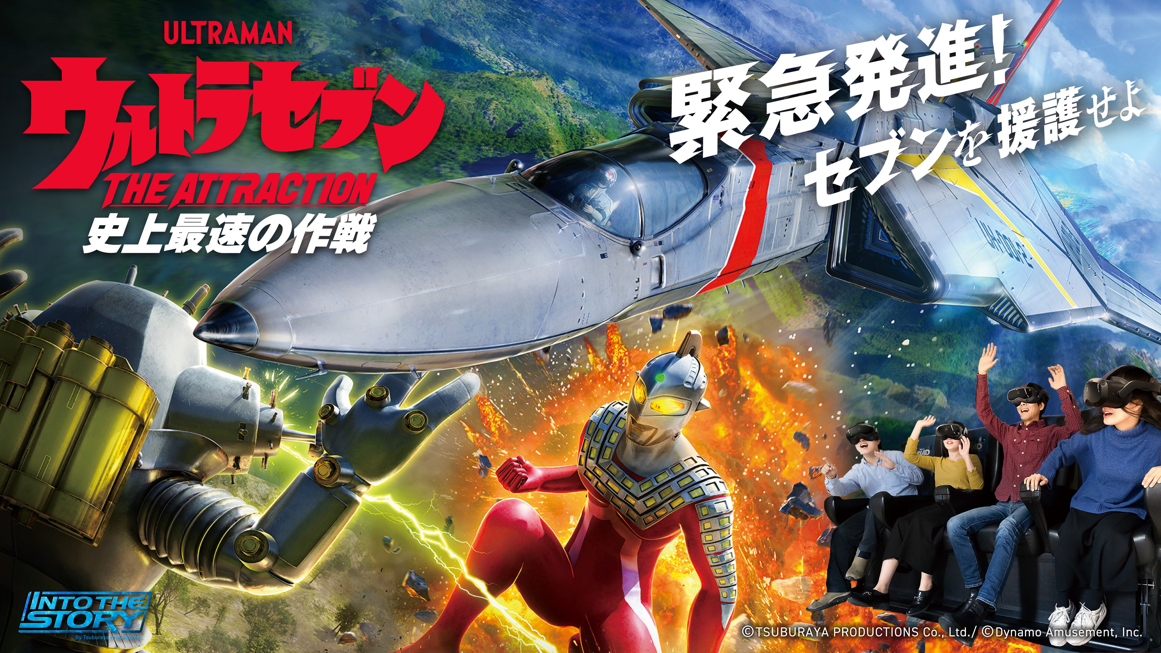 長年愛され続けている特撮ヒーロー『ウルトラセブン』初の体験型VRアトラクション「ウルトラセブンTHE ATTRACTION 史上最速の作戦」は円谷プロダクションとダイナモアミューズメントの共同開発で制作。かつてない<超高速>飛行体験を実現するために、あらゆる演出と技術を集結させた史上最速のイマーシブアトラクションです。