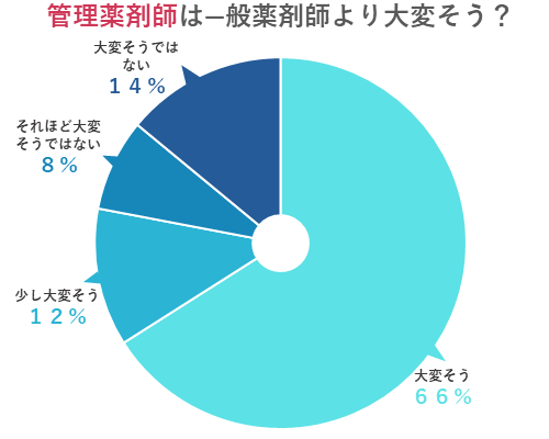 7割弱の薬剤師が、管理薬剤師は一般薬剤師よりも大変と感じている結果となりました。