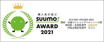 2020年度グッドデザイン賞受賞。生物多様性に配慮した取り組みで「第10回ABINC 認証」を取得。家庭用燃料電池「エネファーム」を始めとした創エネ機器を多数採用し、西日本では初の容積不算入特例を活用した低炭素建築物認定を取得。