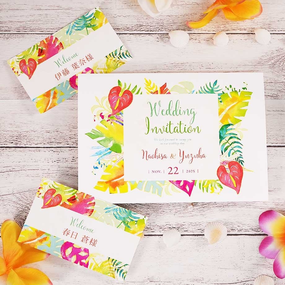 ▼少人数家族リゾート結婚式専用招待状 「トロピカルリゾート」5部セット