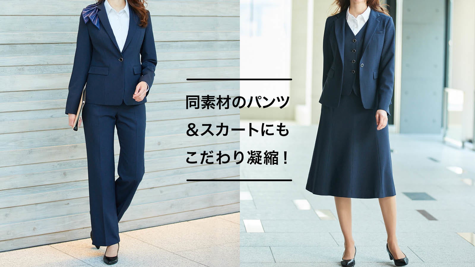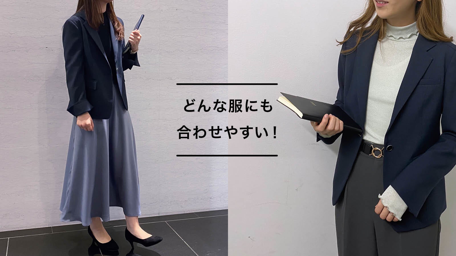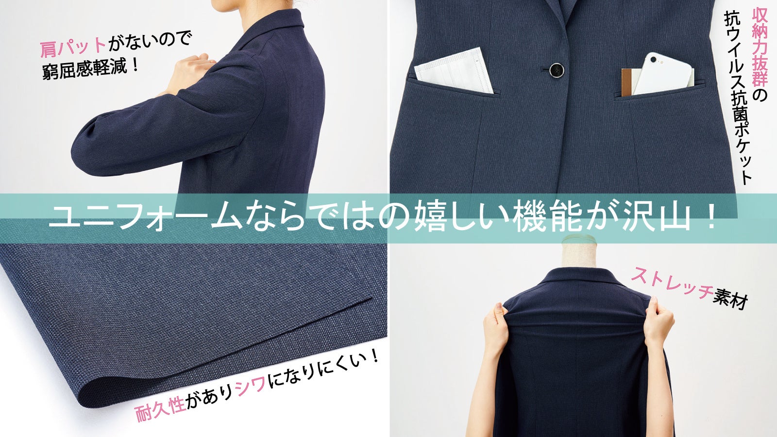 ■コーディネート自在のネイビージャケット。働く女性に嬉しいユニフォームならではの機能も充実!