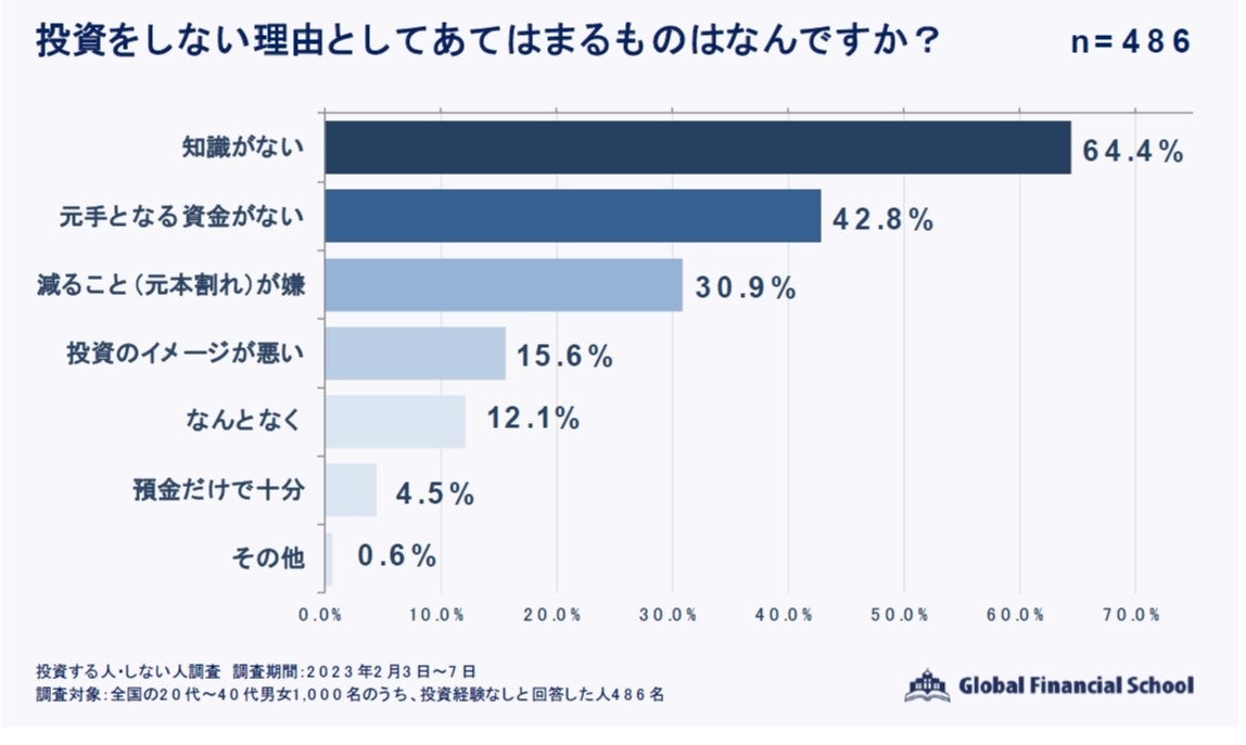 投資しない理由 1位「知識がない」64.4%