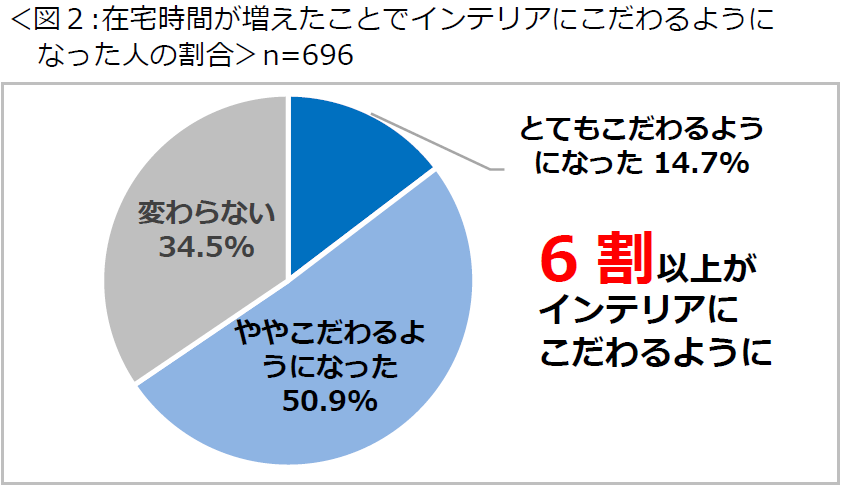 ■コロナ禍で在宅時間が増えた人のうち、6割以上がインテリアにこだわるように。