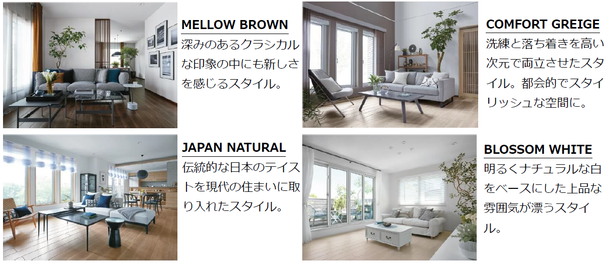 今回の調査では、7割以上がインテリアにこだわりを持ち、さらにはコロナ禍での在宅時間増加に伴い、よりこだわるようになった人も多いことが分かりました。一方で、現在のインテリアに半数以上が不満を持っていることが分かり、その理由として、4割超の人が「色やテイストが統一されていない」を挙げています。一条工務店が今年1月より発売した新ラインアップ「GRAND SMART(グラン・スマート)」では、シンプルかつ統一感を出すことができ、様々なインテリアとの相性も良い、4つのコンセプトスタイルをご用意しています。