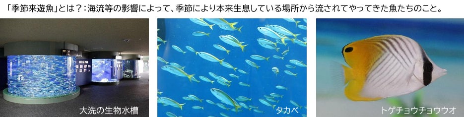 入館してすぐに皆様をお出迎えする「大洗の生物」水槽の3槽を、夏の大洗の海を再現した水槽に模様替えします。黒潮に乗り、この時期に大洗へやってくる「季節来遊魚」をテーマに、タカベやトゲチョウチョウウオなど暖かい海に生息する生き物たちを、期間限定で展示します。夏の大洗の海で出会える色鮮やかな魚たちから、海の環境について学んでみましょう。