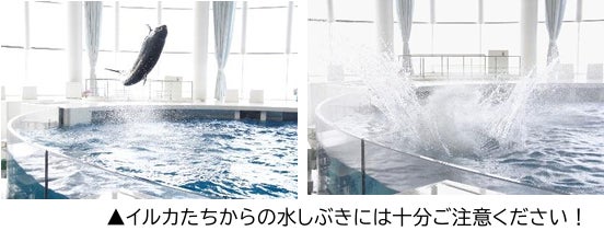 そして、とても暑いこの時期はイルカ・アシカたちからの水しぶきをいつもより多く客席の皆様へプレゼント!客席後方から水しぶきを見て涼を感じるも良し、客席前方に座って全身で水しぶきを浴びるも良し、思い思いの方法で「Splash!! & Water Fes.!!」をお楽しみください!
