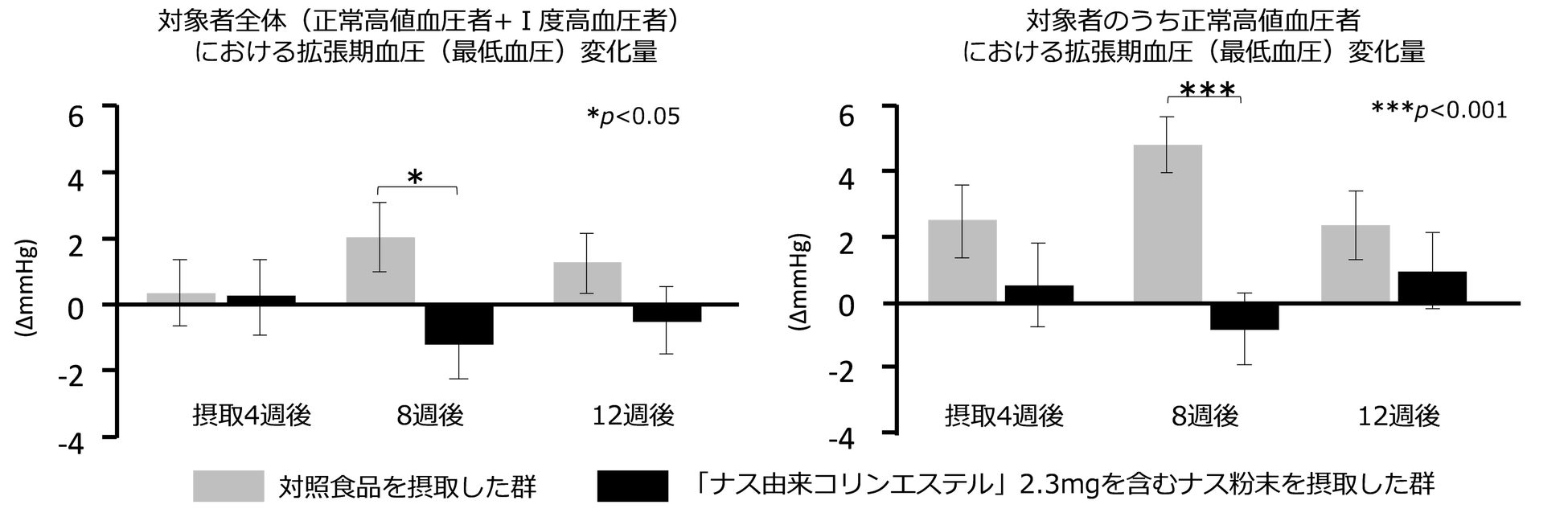図1.ナス由来コリンエステルを含むナス粉末の継続摂取による血圧改善効果