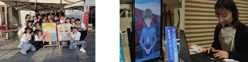 パナソニックの先進技術で開発した遠隔コミュニケーションシステム「AttendStation®※」を活用して、会場内の2箇所に無人案内所を設置します。ディスプレイ上のアバターを介した双方向コミュニケーションにより、会場案内や来場者の問い合わせに加え、今回は、アートツアーの申込みや発券機能を搭載してバージョンアップを行っています。遠隔操作による案内は、跡見学園女子大学観光コミュニティ学部の学生が担当し、次世代の観光案内所として活用できる魅力あるツールであり、かつ商品化に向けて実証実験で知見を重ねることで将来的にはAIによる無人化を目指します。本イベントでは2拠点に設置することにより、効率的に会場案内を行い、店舗やイベントブースへの送客による盛り上げと消費促進を図ります。