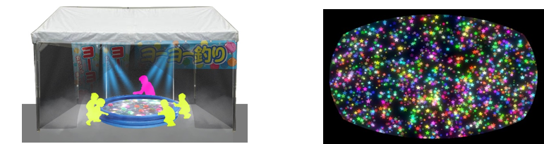 跡見学園女子大学観光コミュニティ学部の縁日コンテンツに、パナソニックの先進技術を組み合わせた新感覚ヨーヨー釣りを実施します。日本の夏祭りを代表する縁日コンテンツであるヨーヨー釣りを映像プロジェクションと極微細ミストのテクノロジーで演出を行い、令和版のヨーヨー釣りに進化させました。未知なる体験「ビックリ・ドッキリ」を演出し、味わったことのない感覚と感動を体感することができます。