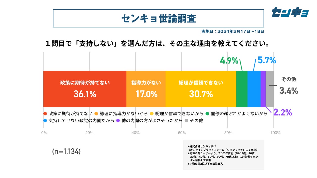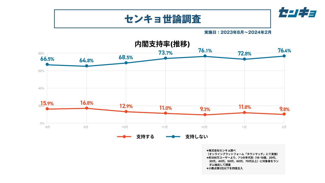 【株式会社センキョ】タウンマッチ定期世論調査、2月の内閣支持率は9.8%
