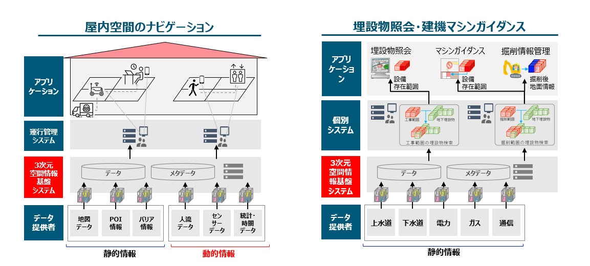 また、両社は当該実証に必要な空間情報を空間IDとひも付け、空間検索・分析を可能とする実証用基盤システムを個別に設計・開発します。